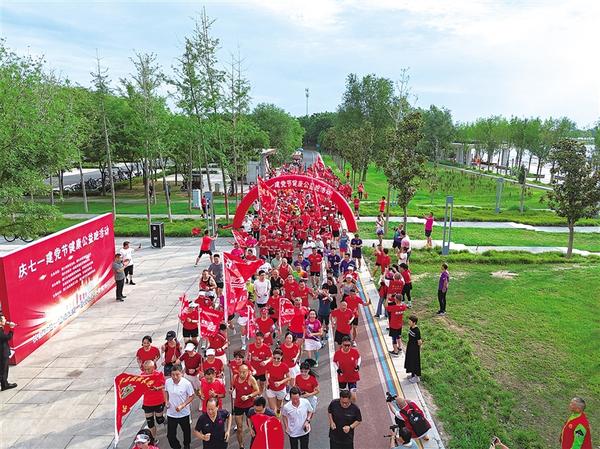為慶祝中國(guó)共產(chǎn)黨成立104周年,弘揚(yáng)偉大建黨精神,推動(dòng)全民健身與公益慈善事業(yè)發(fā)展,6月29日清晨,我市710名跑友聚集在風(fēng)景秀麗的市城鄉(xiāng)一體化示范區(qū)引黃調(diào)蓄湖畔,共同參與慶“七一”健康公益跑活動(dòng)。
