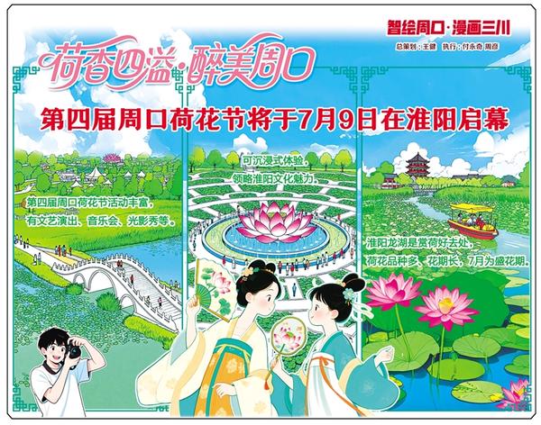 7月9日,第四屆周口荷花節(jié)將在淮陽(yáng)盛大啟幕。本屆荷花節(jié)以“荷香四溢·醉美周口”為主題,活動(dòng)亮點(diǎn)紛呈——國(guó)風(fēng)雅韻音樂(lè)會(huì)奏響千年古韻,無(wú)人機(jī)星空秀點(diǎn)亮伏羲陵夜空,3D水幕光影秀演繹荷塘幻境,荷花市集匯聚非遺文創(chuàng)精品。
