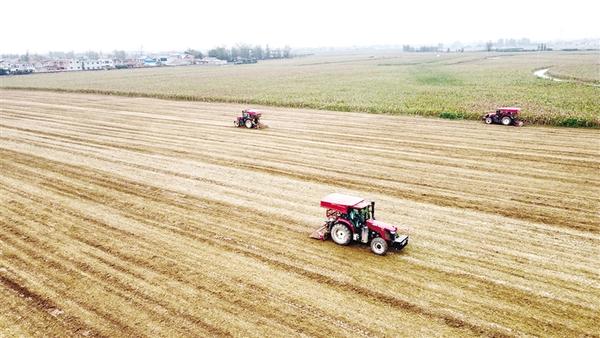 ?10月14日,市城鄉一體化示范區許灣街道孔莊村村民在田間耕作。連日陰雨暫歇,農戶們利用晴好天氣,與時間賽跑,抓緊秋播。