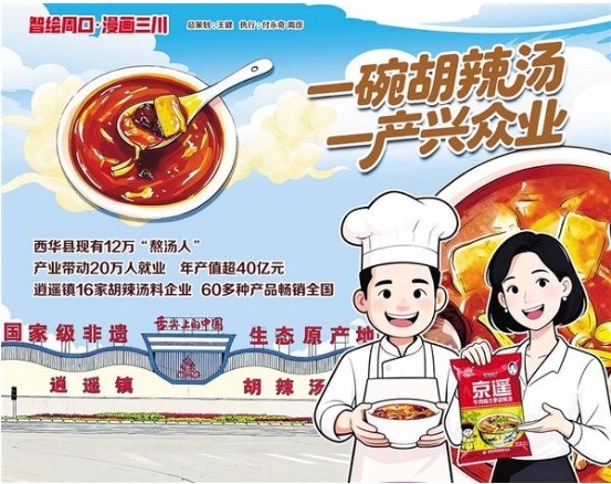 西華縣逍遙胡辣湯風味獨特,以本地優質小麥粉、黃花菜、槐山羊肉為主要食材,配以二十余種香料,湯味香辣濃郁。