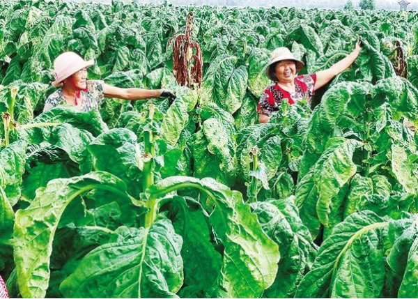 9月2日,鐘點工在商水縣郝崗鎮柴灣村田間幫助種煙大戶郝保社采摘煙葉。