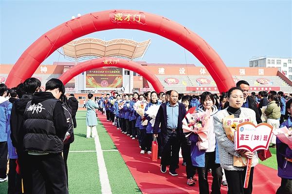 2月27日上午,淮陽中學(xué)運(yùn)動(dòng)場(chǎng)上洋溢著青春的氣息,一支支朝氣蓬勃的隊(duì)伍走過成人門。