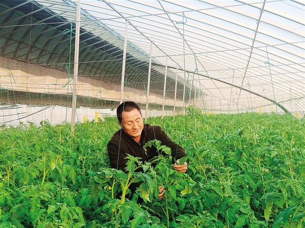 12月6日,淮陽區官路邊村西紅柿產業園日光溫室內郁郁蔥蔥,包棚戶李國旗忙著管理西紅柿,再有一個月這些西紅柿將成熟上市。