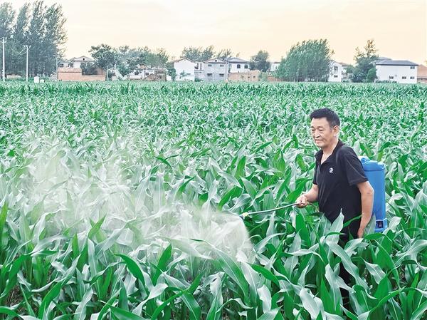 連日來,我市持續出現高溫天氣,為防治病蟲害,確保秋糧豐收,沈丘縣積極引導群眾加強田間管理。圖為卞路口鄉一名群眾為玉米噴灑農藥。